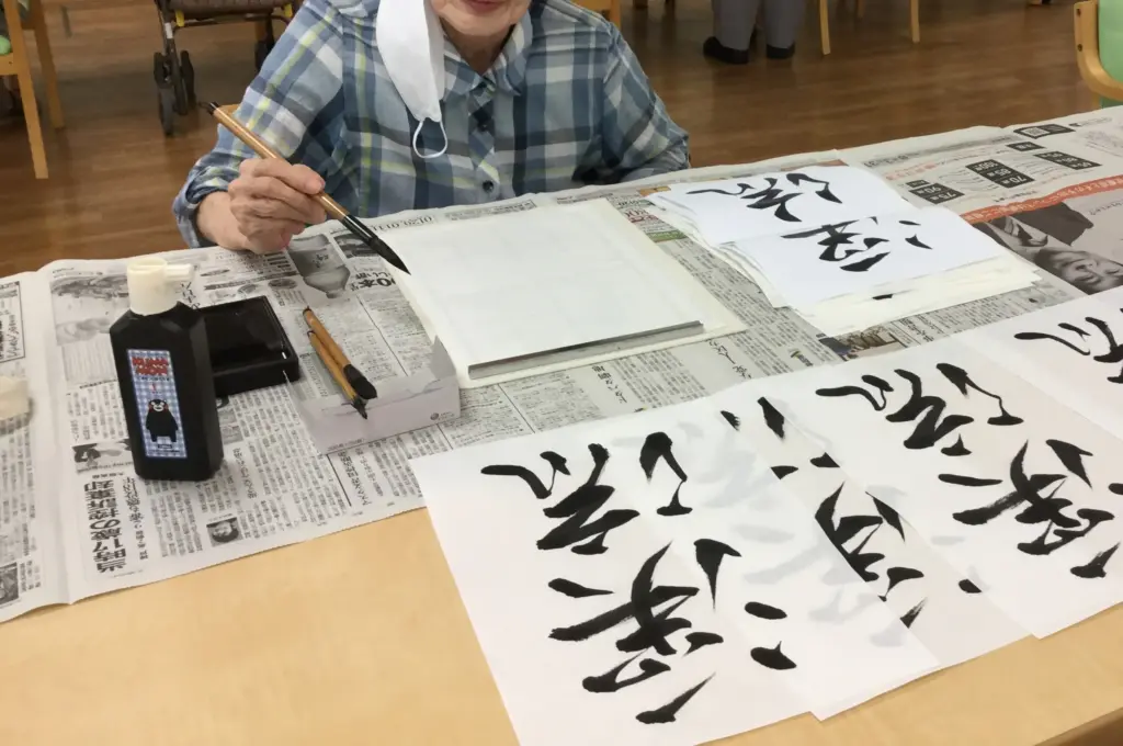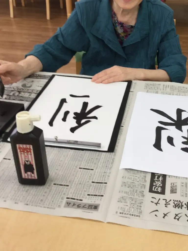 ご入居者様お気に入りのレクリエーション「お習字」です。