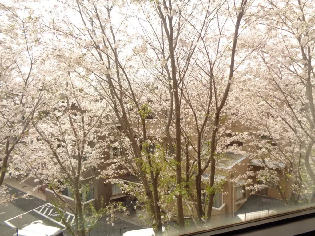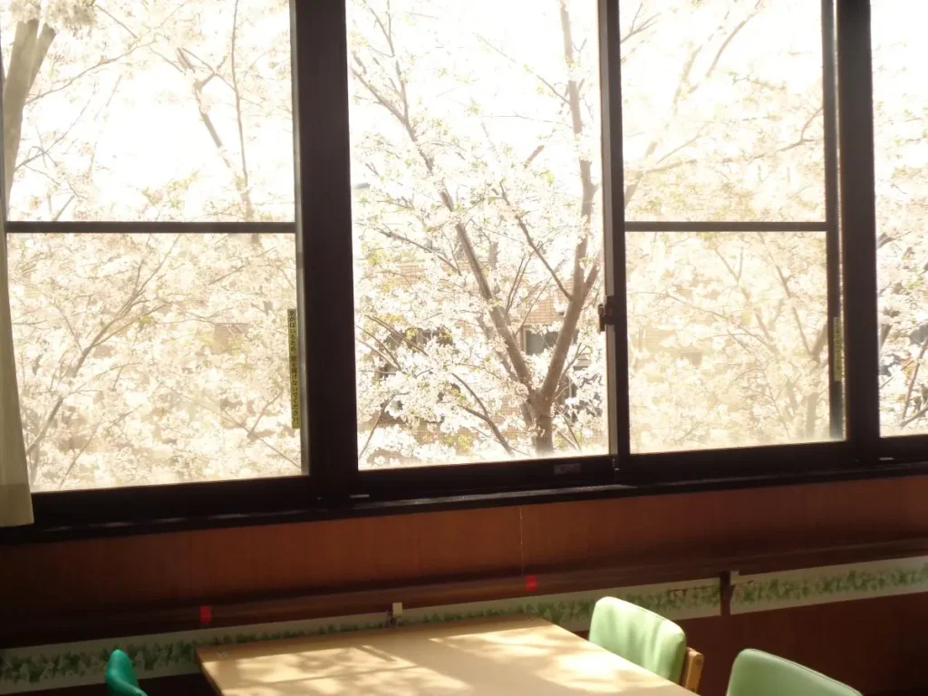 食堂から眺める桜も、外の空気を感じると臨場感たっぷりに。