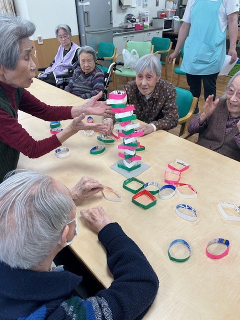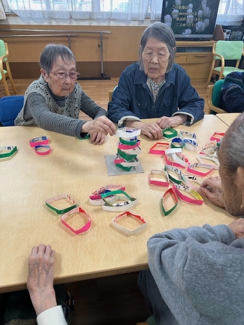 『ひな祭り』を開催しました。皆さまと一緒に菱餅タワーバランスゲームを楽しみました。笑顔と応援の声が飛び交い、会場は大盛り上がり!!普段とは違う動きに挑戦しながら、笑いの絶えないひとときを過ごしました。季節の行事を通じて、心も身体も元気になれる時間となりました。