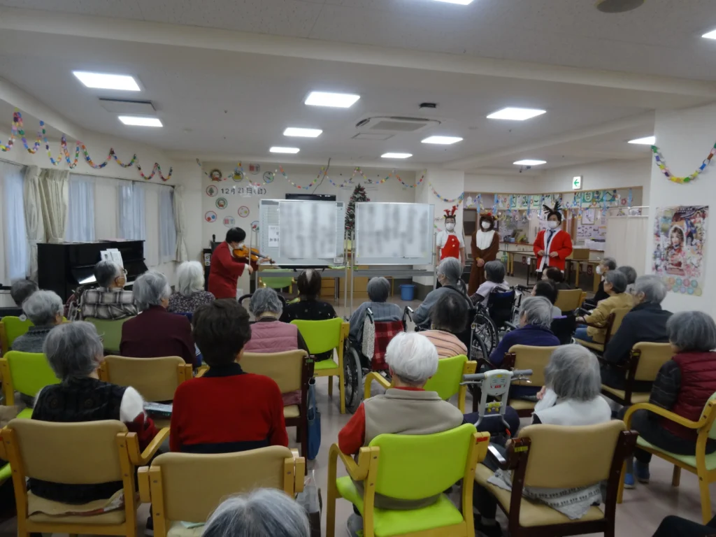 今年はピアノの演奏会やご入居者様によるハーモニカ演奏を行っていただき、皆さま、楽しい時間を過ごしていただけました。