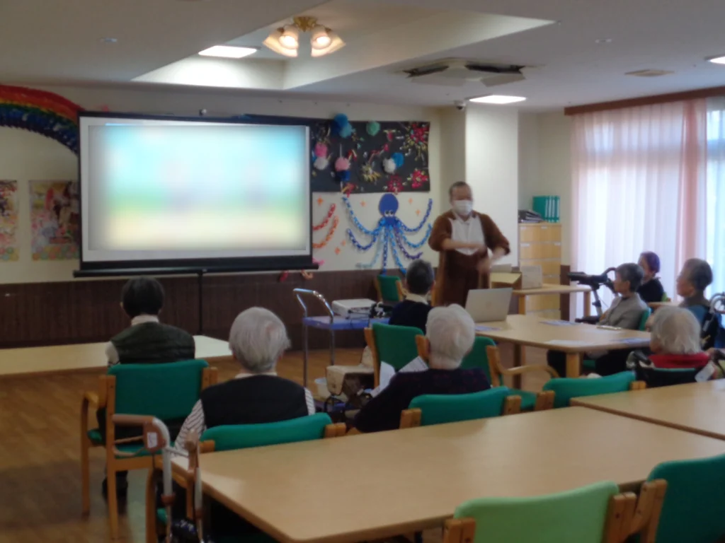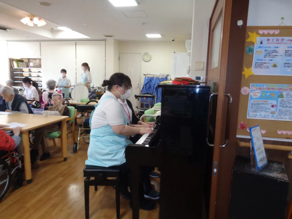 ピアノが得意な職員の演奏で、ご入居者様とクリスマスソングを歌い、ビンゴ大会で盛り上がりました。ビンゴ大会の優勝者にはブランケットが送られ、他のご入居者様からは「来年はプレゼントが欲しい!」との声もあがっていました。