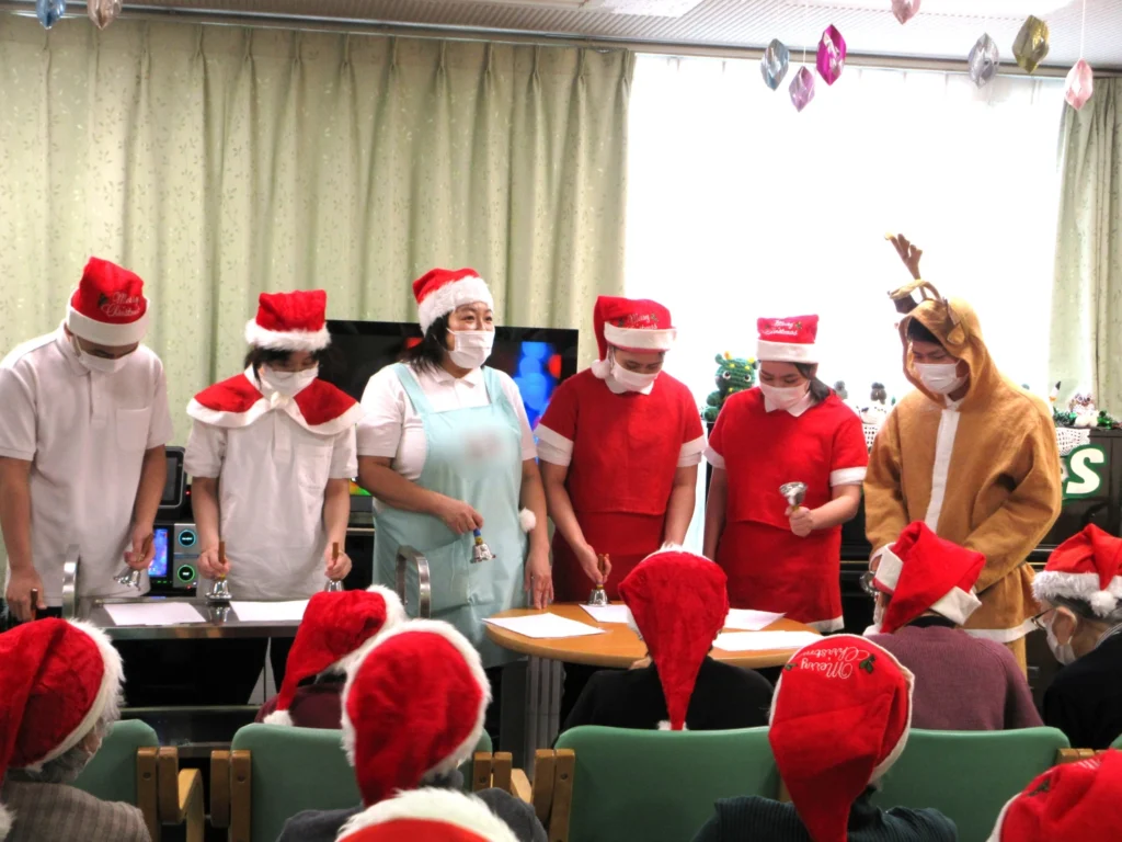 2024年の「クリスマス会」では、職員によるハンドベル演奏を披露し、クリスマスプレゼントを贈呈させていただきました。