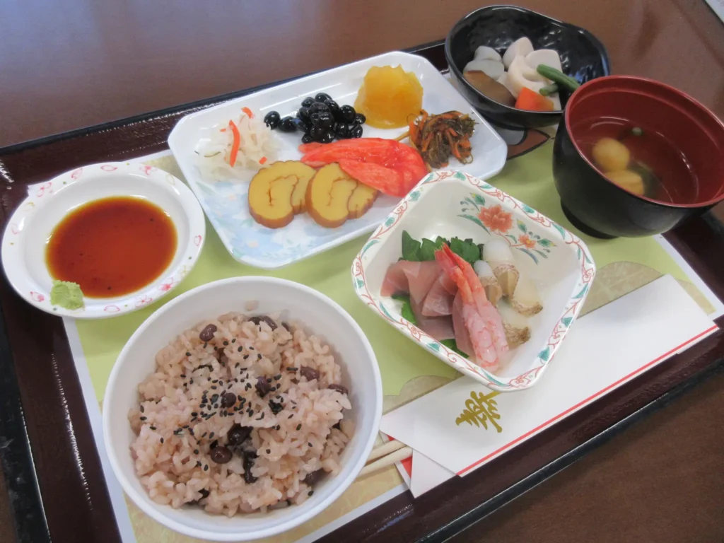 色鮮やかな盛り付けに、「美味しそう」「お刺身もある、嬉しい」と、目を輝かせていらっしゃいました。 玄関に飾っている鳥居は期間限定となりますが、ぜひこの機会にご見学へお越しください。