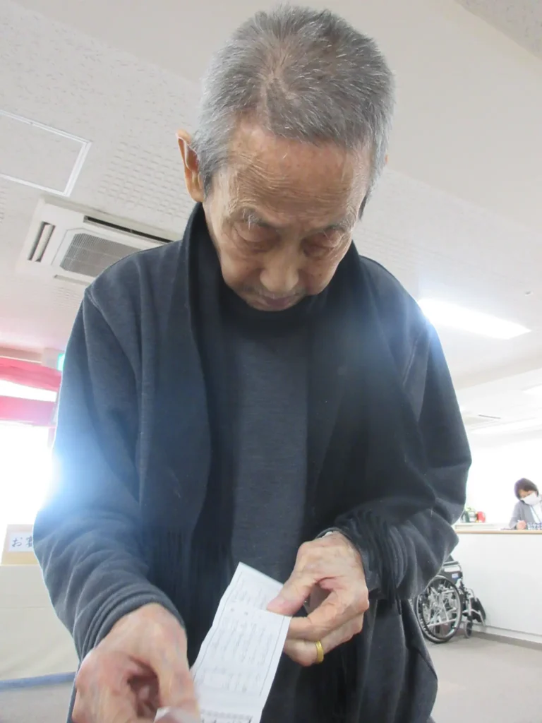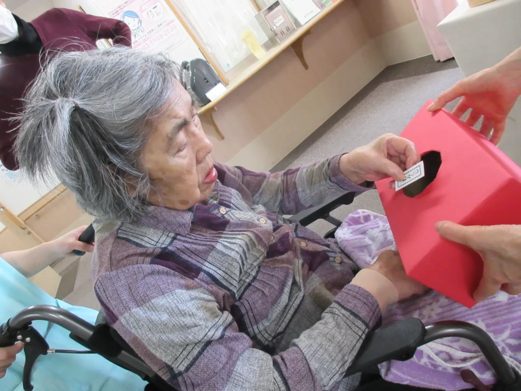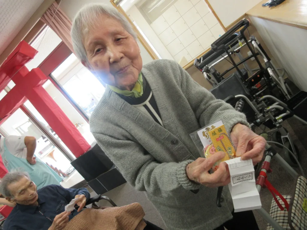レクリエーションの時間には、にお賽銭を投げ入れたり、おみくじを引いたりと「初詣」を楽しんでいただきました。