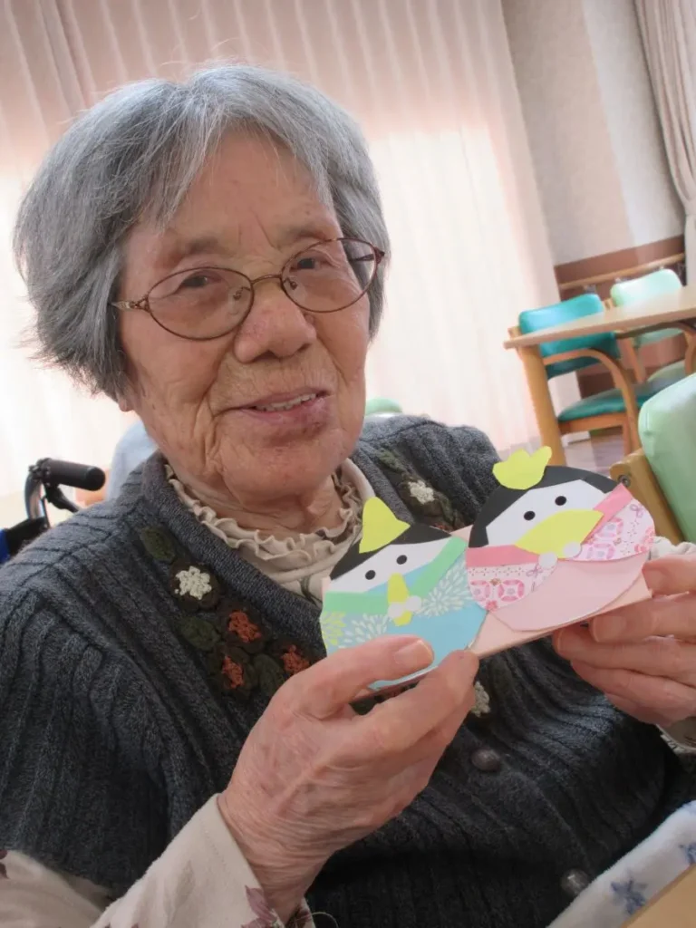 ベストライフ岸和田では創作好きな女性のご入居者様が多く、桃の節句に向けてひな人形の創作を行いました。