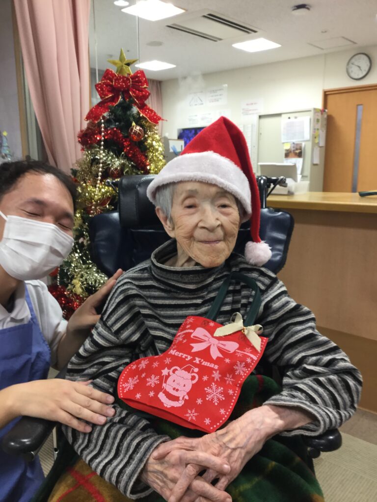 2024年のクリスマスは、職員が心を込めたご用意したプレゼントを、施設長サンタからお一人おひとりに手渡しさせていただきました。イベント前に撮影させていただいたご入居者様のお顔にはクリスマスベントへの期待感があふれています。