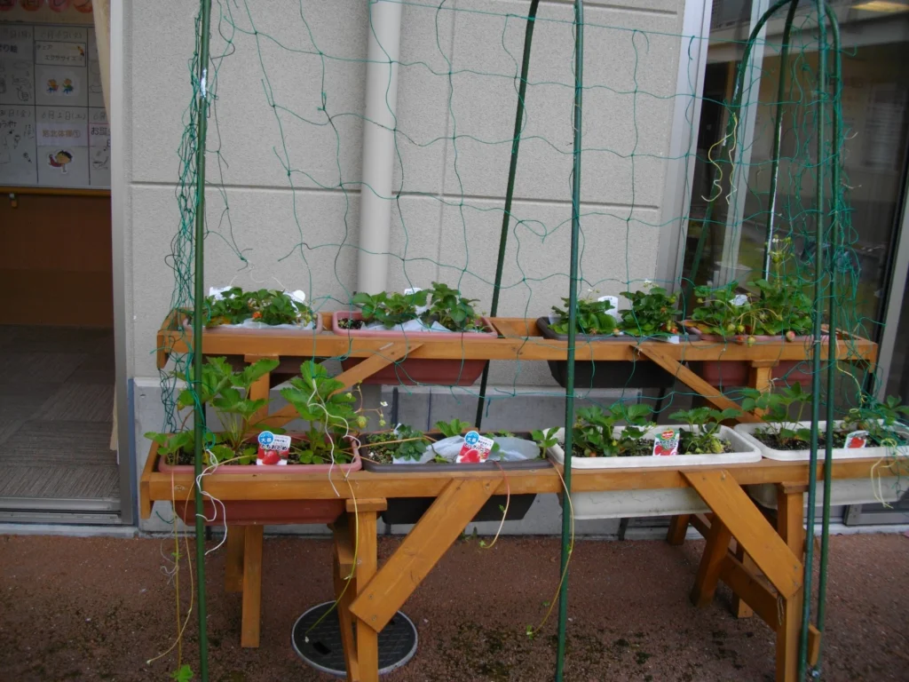 いちご狩りを楽しんでいただくため、施設の中庭でいちごの苗を育てました。虫や鳥には悩まされましたが、苗が順調に大きくなり実が赤くなっていく様子を皆さま楽しみにご覧になっていらっしゃいました。