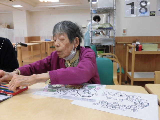 ただの塗り絵と言って侮るなかれ……。皆さま真剣に構想を考え、悩み、そしてペンを走らせます……。見ているこちらもサポートのため、冷たいジュースを差し入れます。