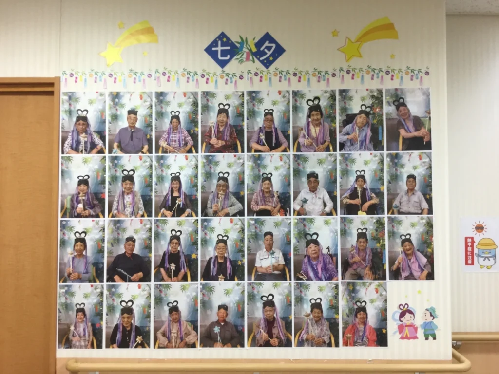 この取り組みは、2020年のコロナウイルス感染拡大により面会が制限されていた時期に、ご家族様へご入居者様のご様子をお伝えするために始めたものです。 今では年始だけでなく、ひな祭りや端午の節句、七夕などの季節の行事でも記念撮影を行っており、多くのご入居者様が撮影の日を楽しみにされています。