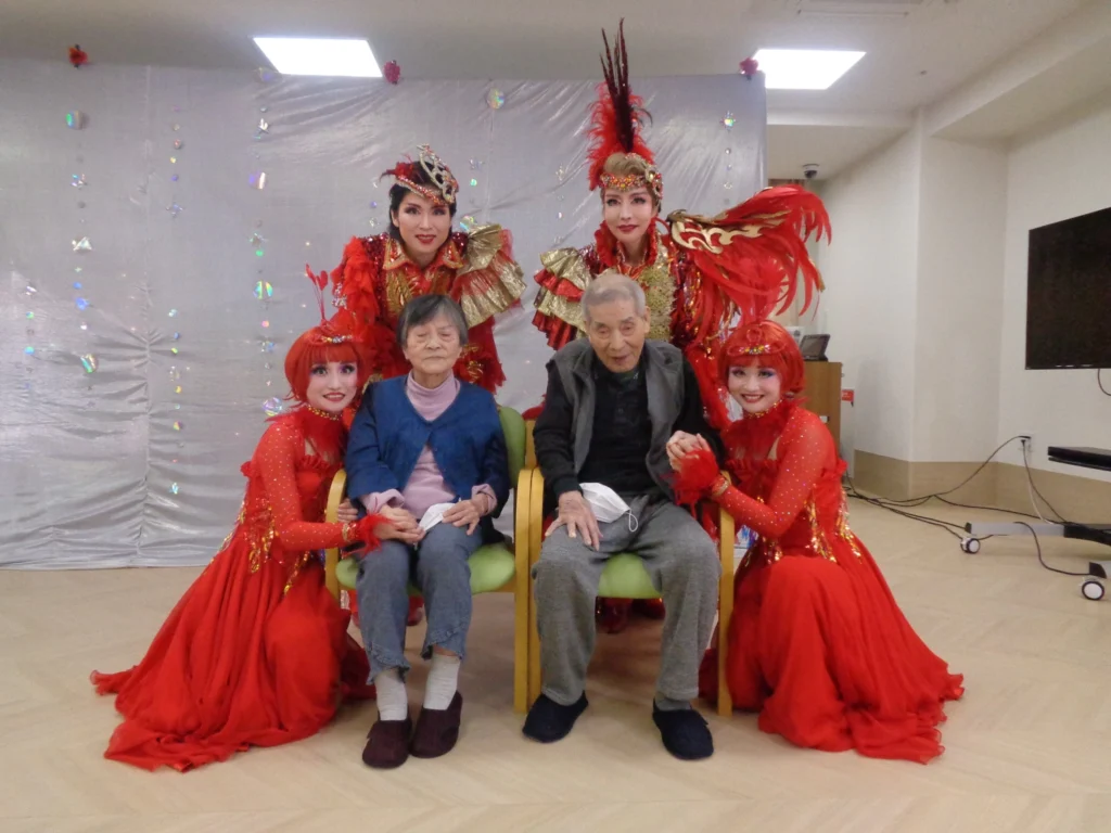 また終演後にはお一人ずつ写真を撮っていただき、後日『母の日・父の日プレゼント』で贈らせていただいた写真立てに入れ、ご入居者様の居室に飾らせていただきました。