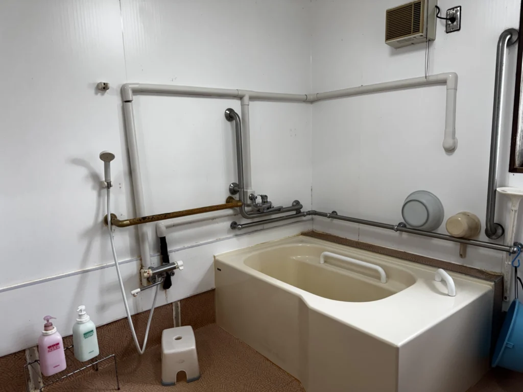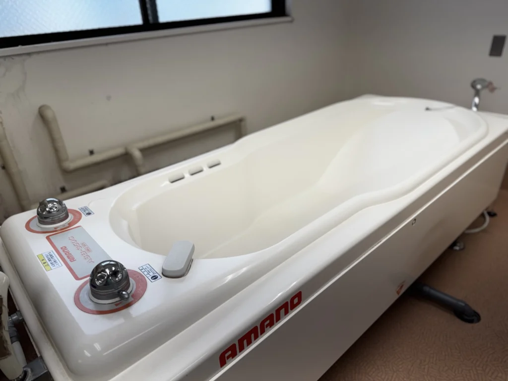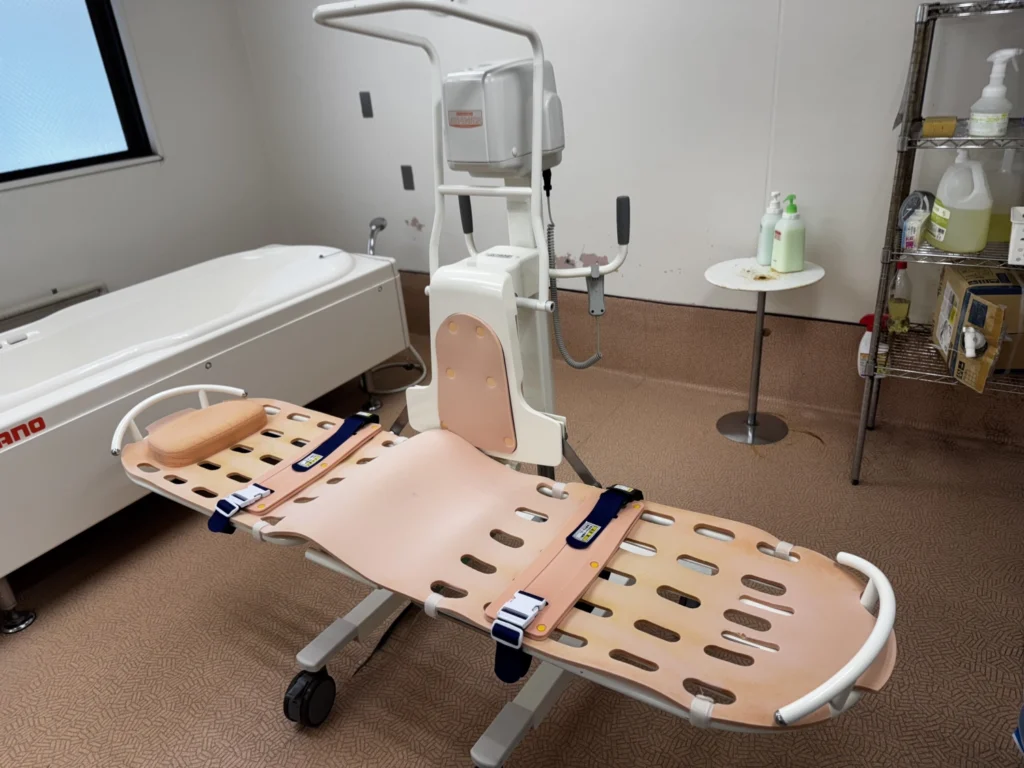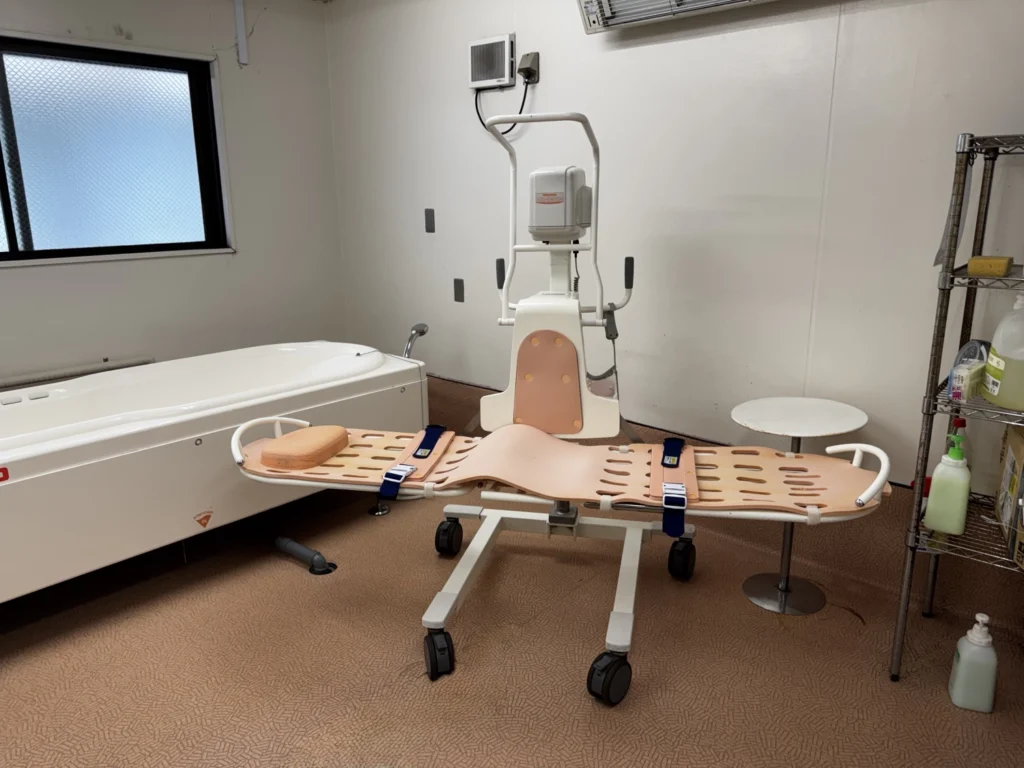 ベストライフ御殿場では、快適にご入浴いただける環境づくりに力を入れています。一般浴では、木のぬくもりが感じられるヒノキ造りの浴室をご用意しています。また、機械浴ではストレッチャーを使用することで、立位が難しい方でも安全に入浴していただけるよう配慮。お身体への負担を軽減しながら、安心してご利用いただける工夫も行っています。心身ともにゆったりとおくつろぎください。