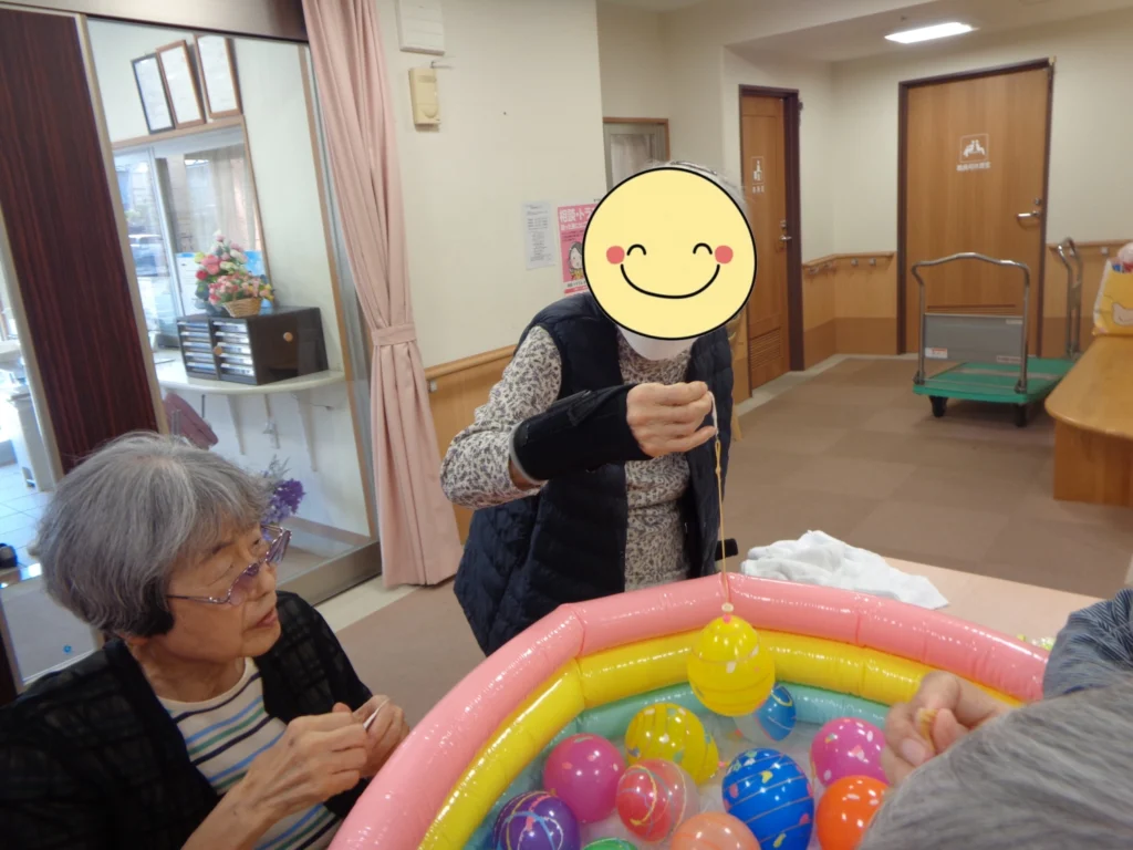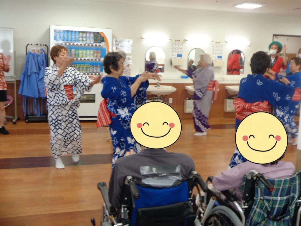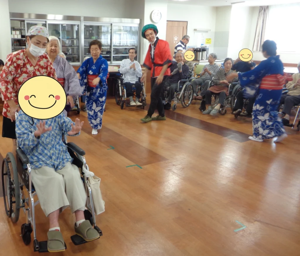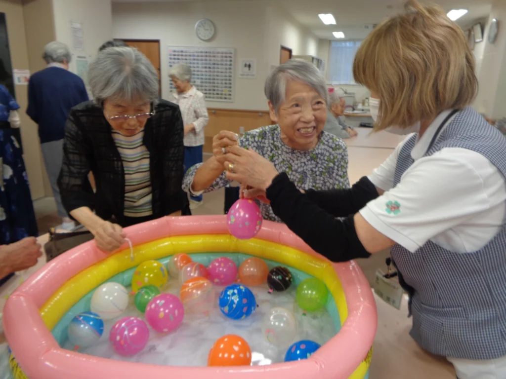 職員もコスプレで盛り上げ、ご入居者様、ご家族様の素敵な笑顔がみられました。踊り終了後には「ヨーヨー釣り」を行っていただき、楽しい夏の思い出を釣り上げていただきました。