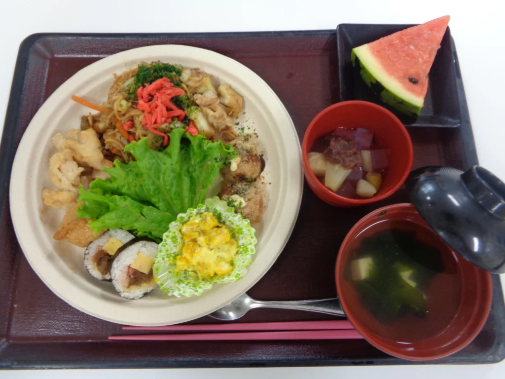 お祭りの日の昼食は、夏祭りを思い出す特別メニューをご用意しました!