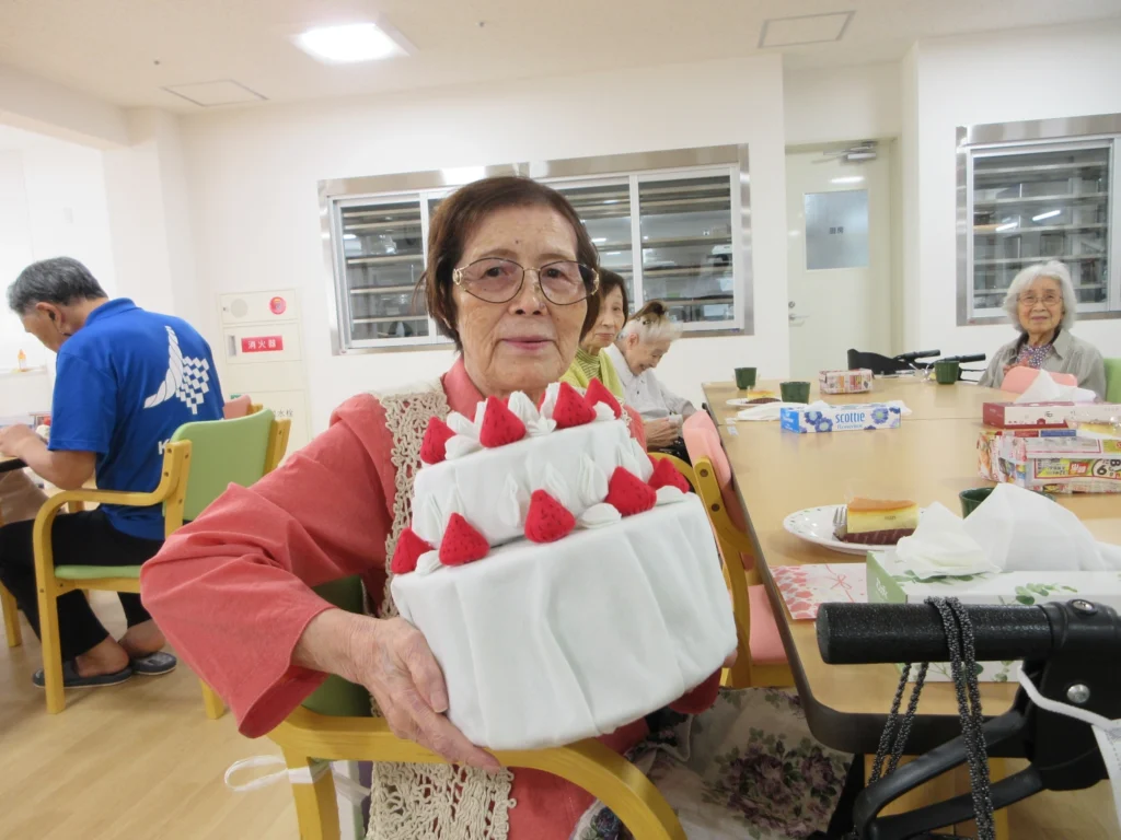 お誕生日を迎えられたご入居者様は計8名。それぞれの方にお好きなケーキをお聞きして、ご用意しました。「久しぶりに食べたからすごくおいしかった」、「また来年もよろしくね」など、多くのお褒めの言葉をいただきました。 いくつになっても、誕生日は特別な日です。これからも、お一人おひとりのご入居者様の人生を大切に思い、心に残る時間を共に過ごしてまいります。