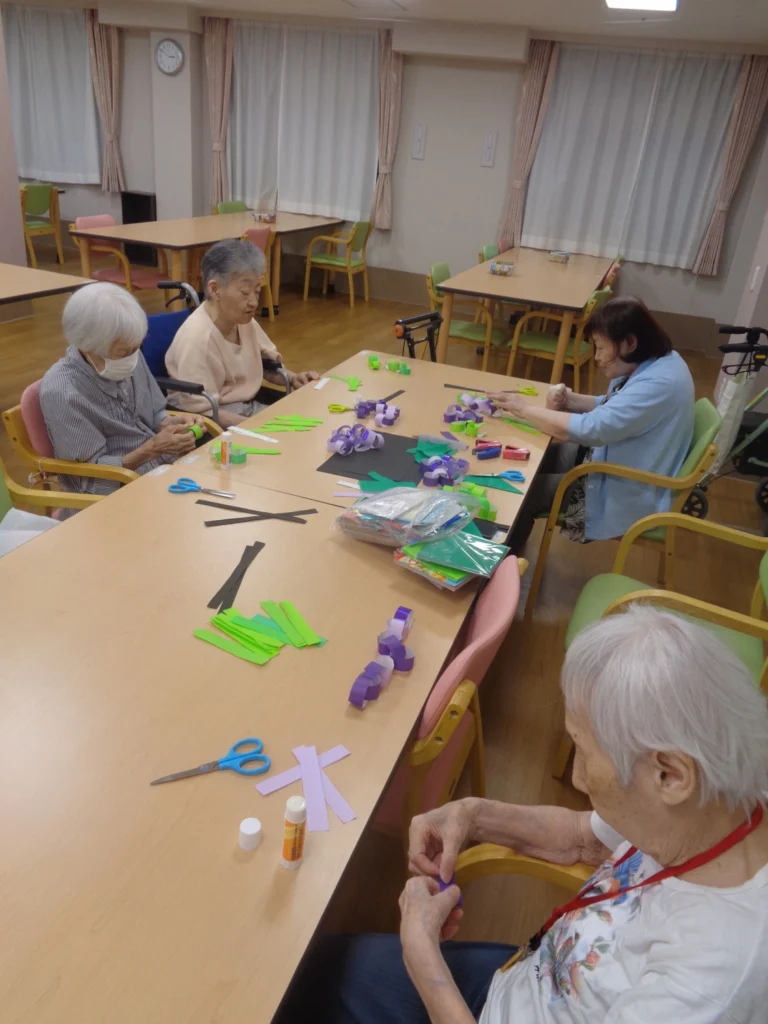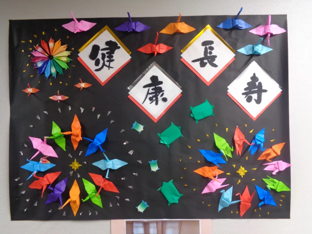 「こんな飾りつくりたい!」の一言で、職員も驚きのアイデアが飛び交います。紙一枚で季節を感じる素敵な飾りができあがりました。