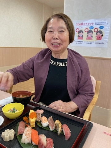 毎年ご入居者様から「また食べたいな」「今年はお寿司食べられるの?」と多くの声が寄せられる、一大イベントです。