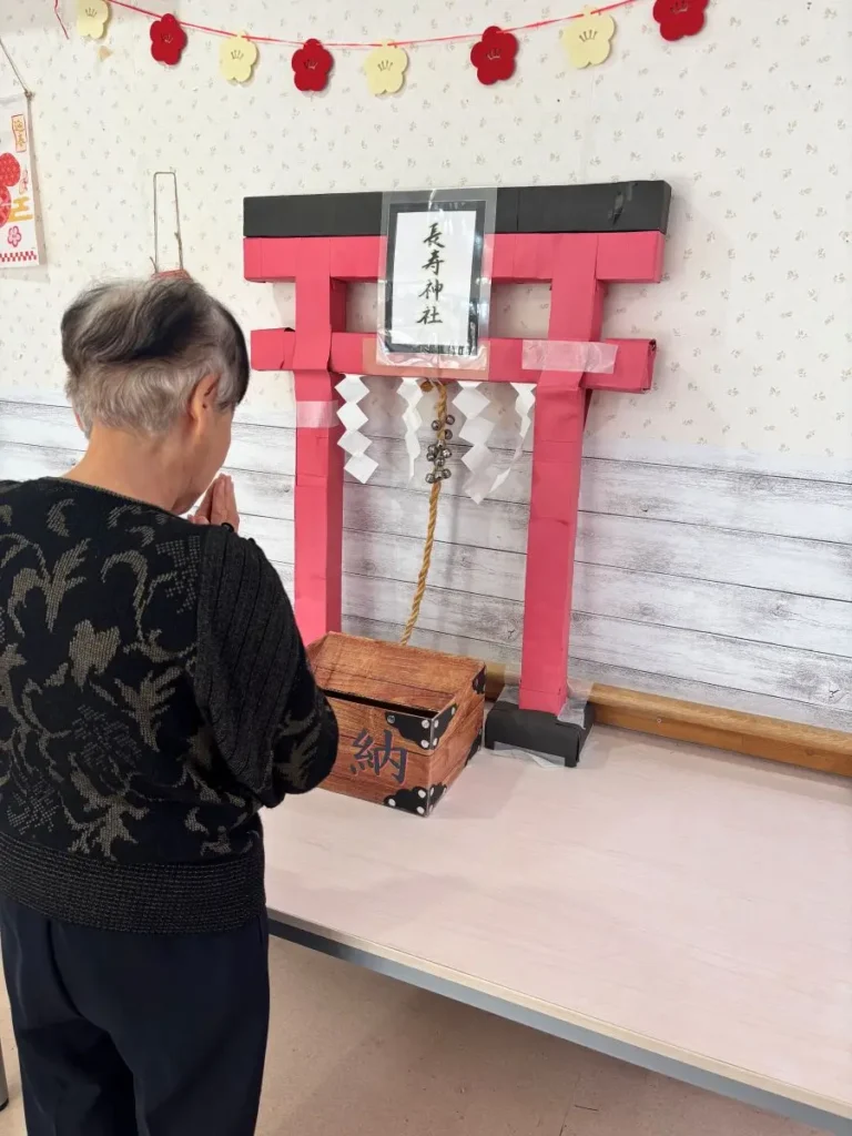 三が日には、スタッフ手作りの鳥居を施設内に設置し、初詣気分もお楽しみいただきました。