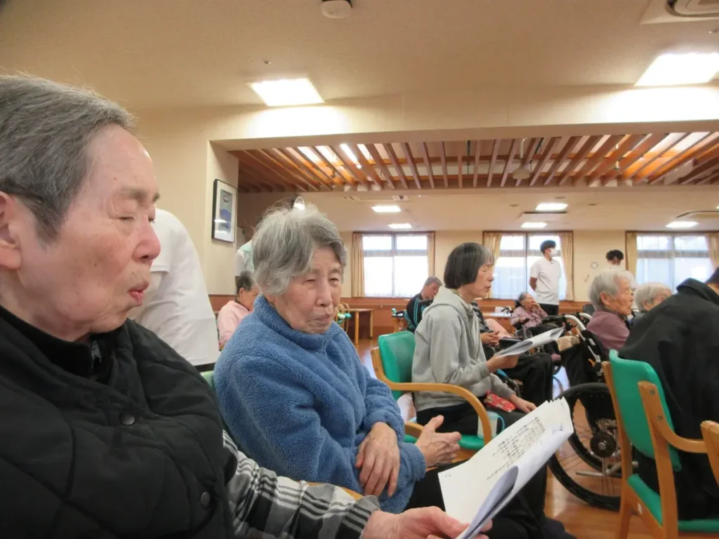 ご入居者様になじみのある歌や演奏を楽しみながら、皆さま一緒に歌い、大いに盛り上がりました。