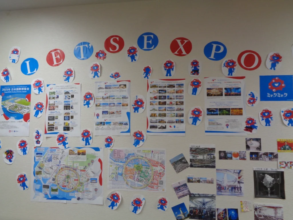 ご入居者様も会場に行っている気持ちで参加されており、55年前の大阪万博のことを思い出されたり、当時のお話をされているご入居者様もいらっしゃり、学生ボランティアの方たちと楽しい時間を過ごせました。