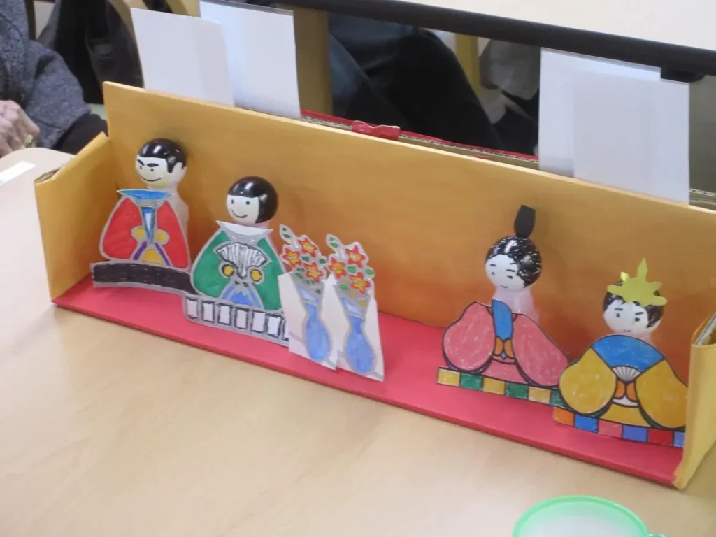 各テーブルには、以前の工作レクで皆さまと制作した雛人形を飾り、「かわいいね」と眺めながら会話も弾みました。 春の訪れを感じる、和やかで心温まるひとときとなりました。