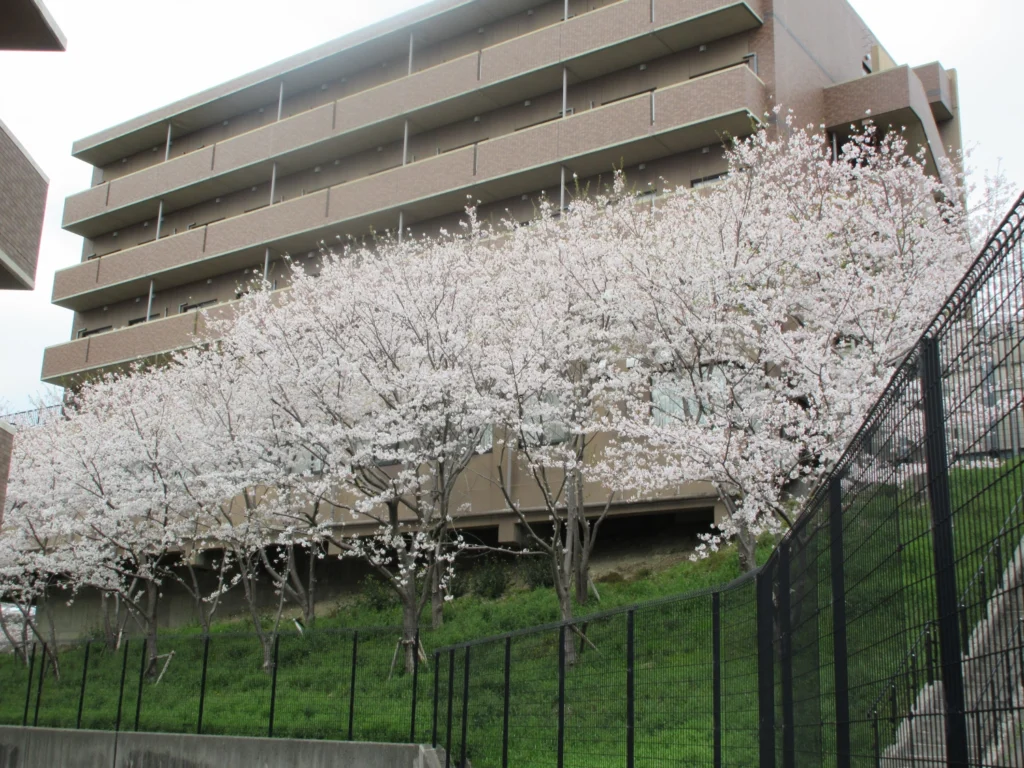 施設内からも桜を楽しむことができますが、外で眺める桜は一段と美しく見えます。