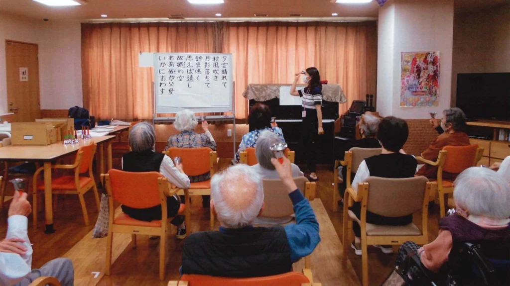 ご入居者様がとても楽しみにされているプログラムで、施設の中でも最も参加人数が多いレクリエーションです。
