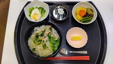 ベトナムからの技能実習生が踊りを披露してくれたイベントもありました。その日の昼食には、ベトナムつながりで「フォー風うどん」を提供させていただきました。
