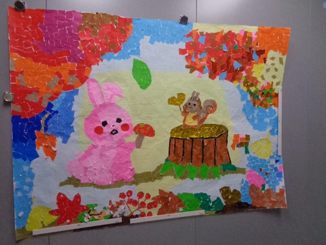 中でも、「ちぎり絵」は自慢の作品を多く生み出しています。大きな模造紙に、ご入居者様とスタッフで、思い思いに折り紙をちぎり、貼っていきます。季節ごとにそれぞれテーマがあり、完成したちぎり絵を掲示すると「貼ってみるともっと綺麗ね」「あそこは私が折り紙を貼ったの」など、皆さまとても喜ばれます。