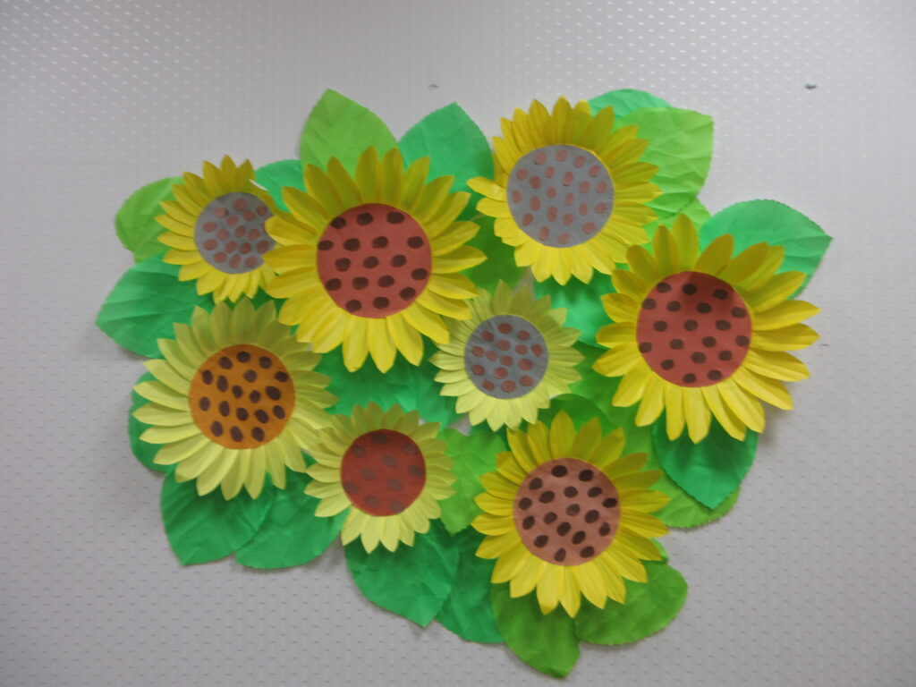 人生という大輪の花を咲かせ、今も輝いている皆さまに負けない、皆さまと一緒に作った、輝く花の作品です。
