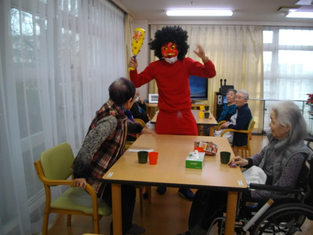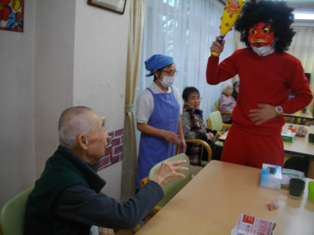 鬼に豆をぶつけることで、邪気を追い払い、気分もリフレッシュ!!ご入居者様にとても好評のイベントです。