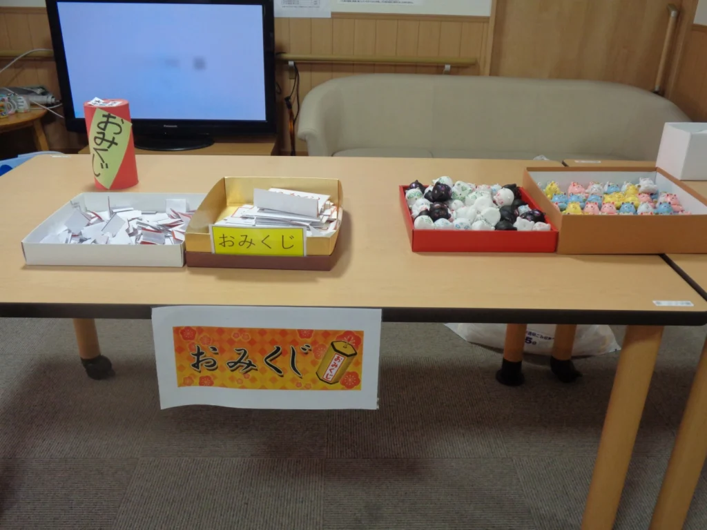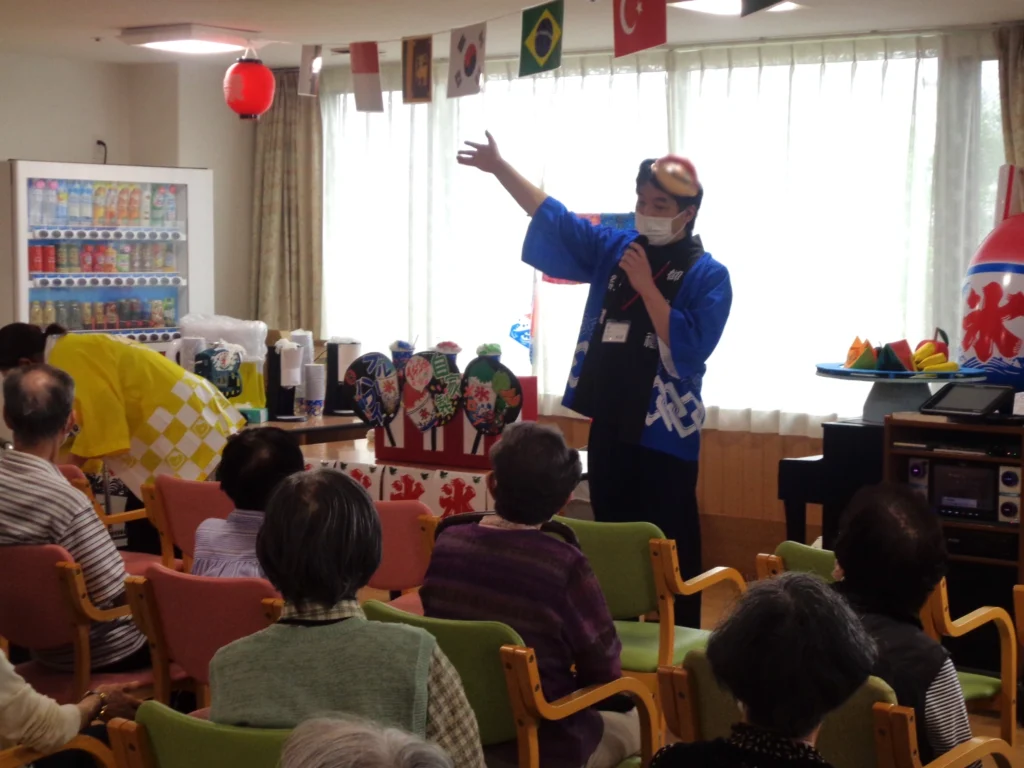 第一部として昼食に「お祭りメニュー」をご提供。第二部では、かき氷・くじ引き・おみくじ・射的などのお店を出店。また「お守り」を皆さまにプレゼントさせていただきました。おみくじや射的では、一喜一憂しながらさまざまな表情で楽しまれていました。大いに夏を感じていただけたと思います。