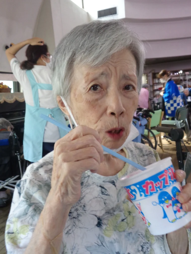例年は午後だけの開催ですが、今回は担当者を含め職員が少しでも多くの皆様に楽しんでいただきたいという熱い想いから、午前と午後の2部制で実施しました。当日はお祭り遊びとして「ボーリング・ヨーヨー釣り」「輪投げ」「かき氷」を皆さまに楽しんでいただきました。かき氷を召し上がったご入居者様からは「夏らしくていいわね、とても楽しい」などのお声をいただきました。