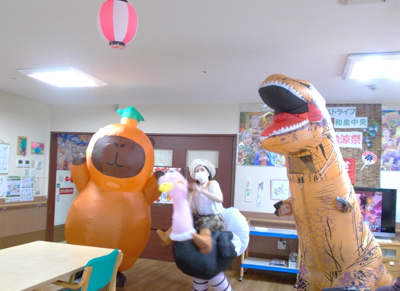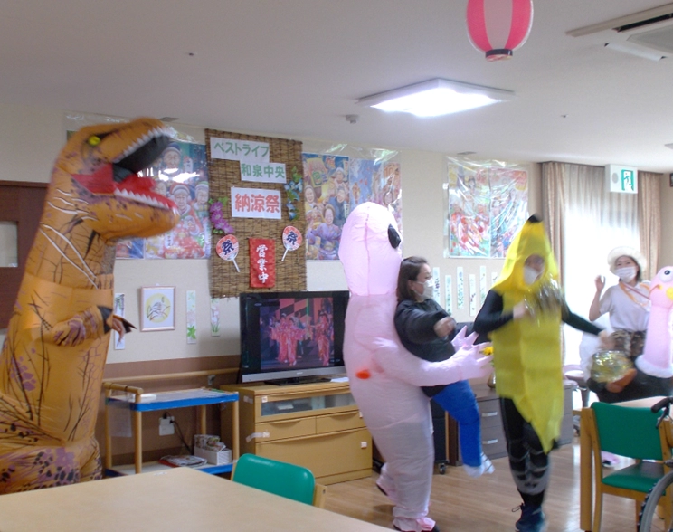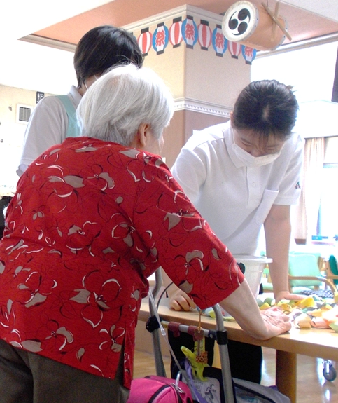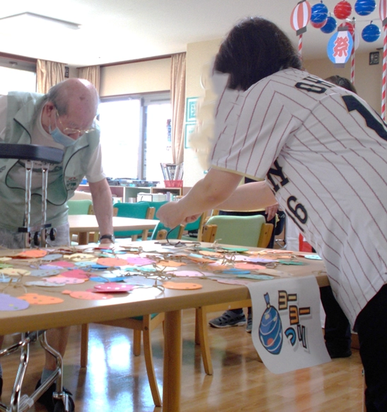 毎年恒例、職員による「マツケンサンバでカーニバル♪」の鑑賞からスタートするベストライフ和泉中央の納涼祭!今年は紙で作った「的あて」や「金魚すくい」、「ヨーヨー釣り」で、1時間では足りないぐらい盛りだくさんに遊んでいただきました。