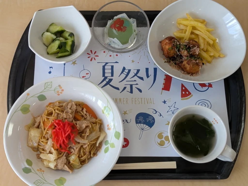 館内を夏らしく飾り付け、昼食も昔のお祭りを思い出せるような特別メニューをご提供。