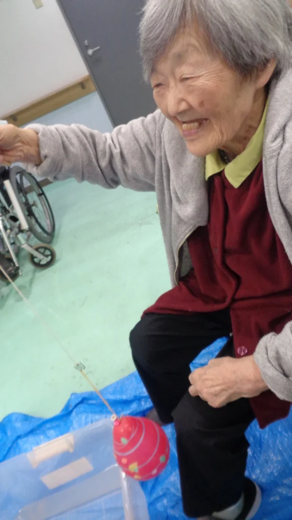 ヨーヨー釣りは色々な模様があるので、気に入った柄を手に入れようと頑張っておられました。上手なご入居者様が2つ同時に釣られる器用な姿も。