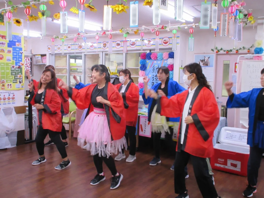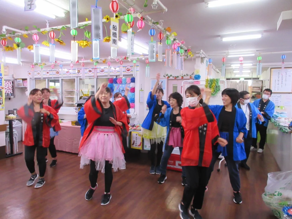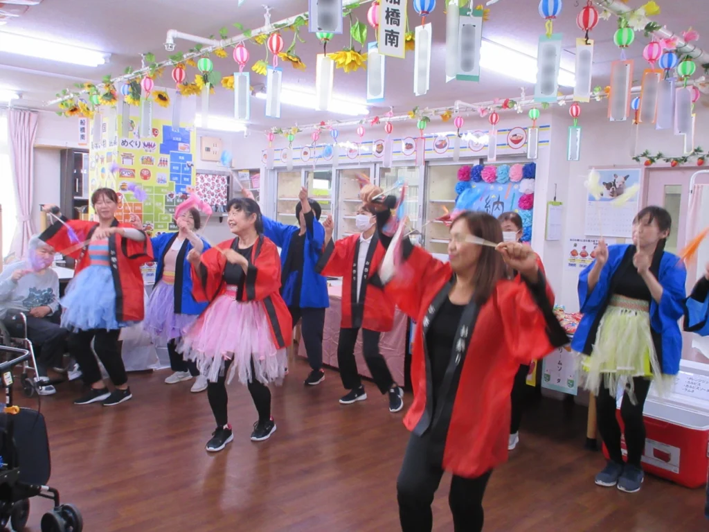 祭の前半は定番の『フランクフルト』『チョコバナナ』『クリームソーダ』『フライドポテト』をご用意。昔を懐かしみながら召し上がっていただきました。後半はご入居者様と職員による出し物で盛り上がりました。