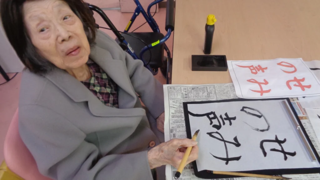 半紙1だけでなく2枚、3枚と複数枚書き、その中で一番良かったと思う作品をご自身の居室に貼られているご入居者様もいらっしゃいます。