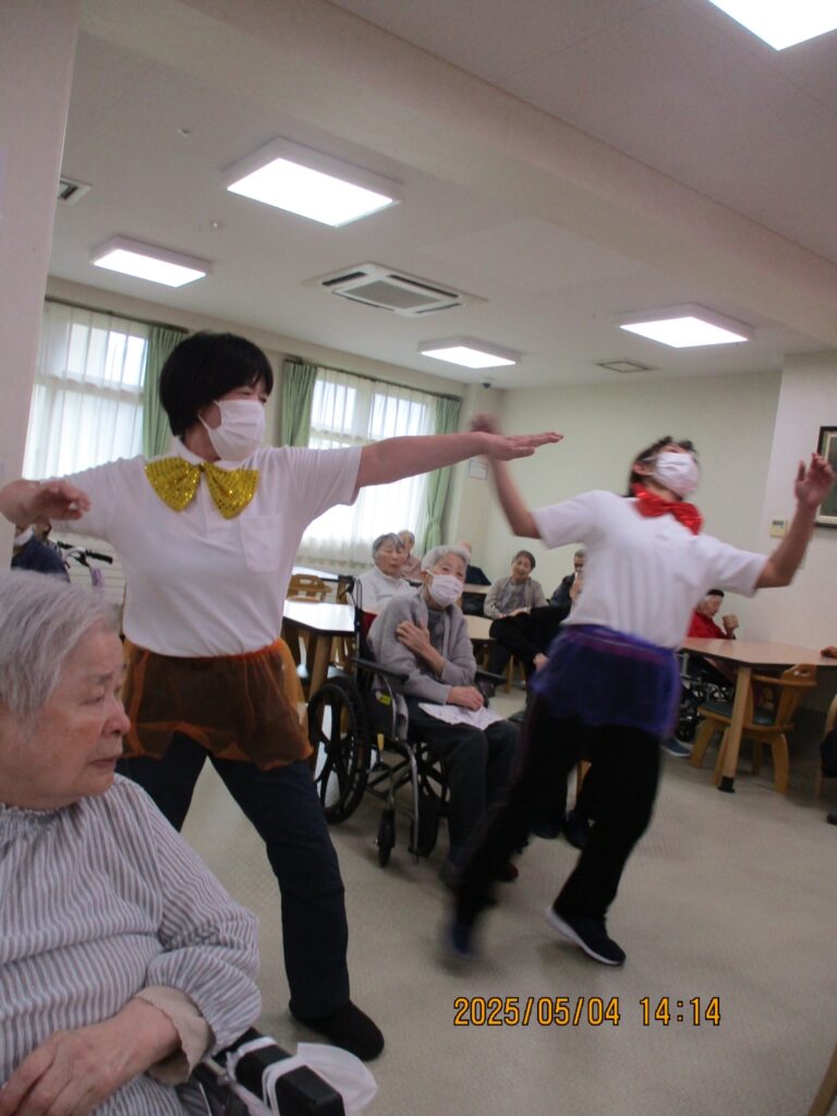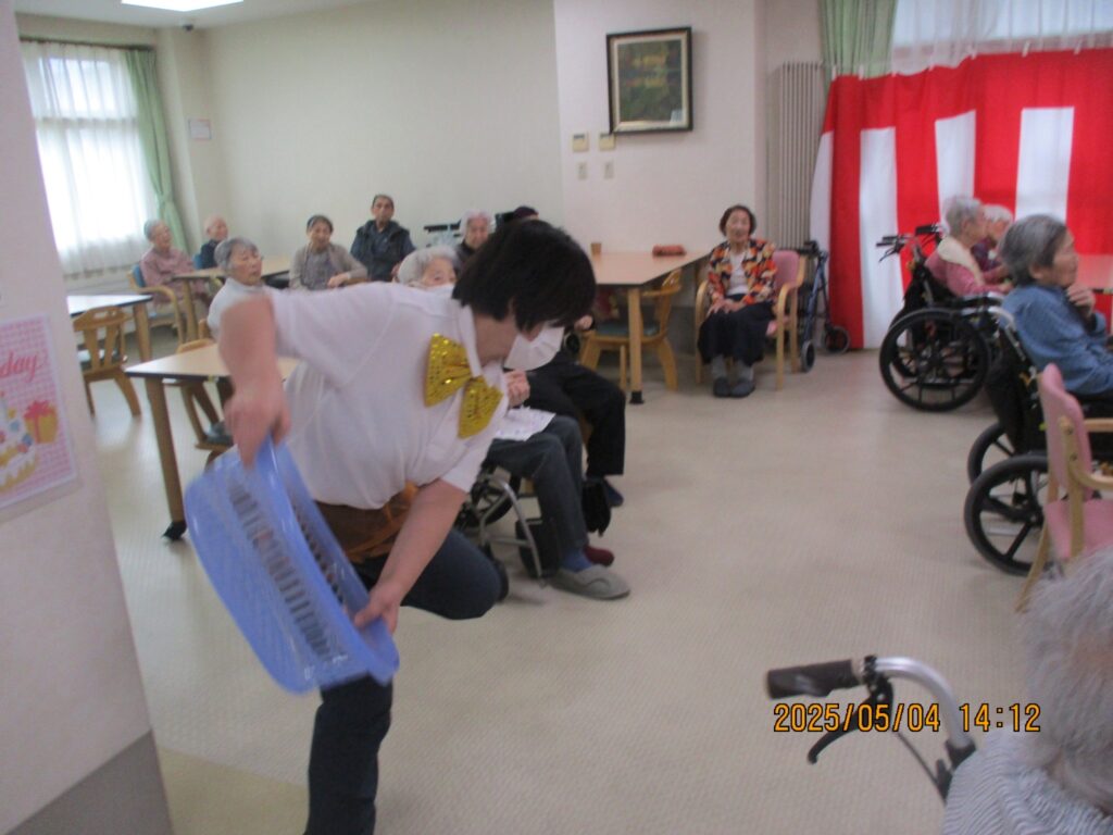 当施設自慢のお誕生日会では、職員が派手な変装をして余興を行います。大変な盛り上がりをみせ、ご入居者様にもご満足いただけました!