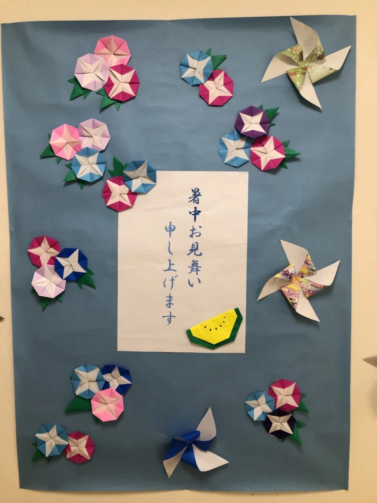 今年の夏は特に暑く、外出することが難しいご入居者様にも、館内装飾で夏を感じていただけるように工夫しました。