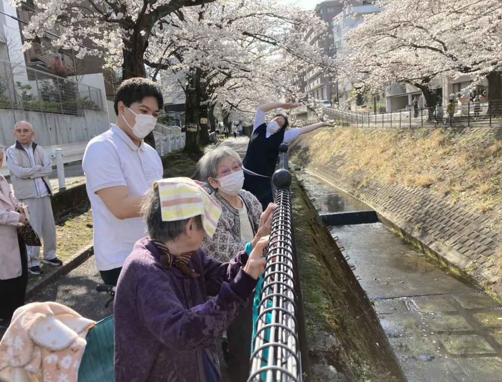 なかなか外出が難しいご入居者様にも桜を眺めて季節を感じていただきます。