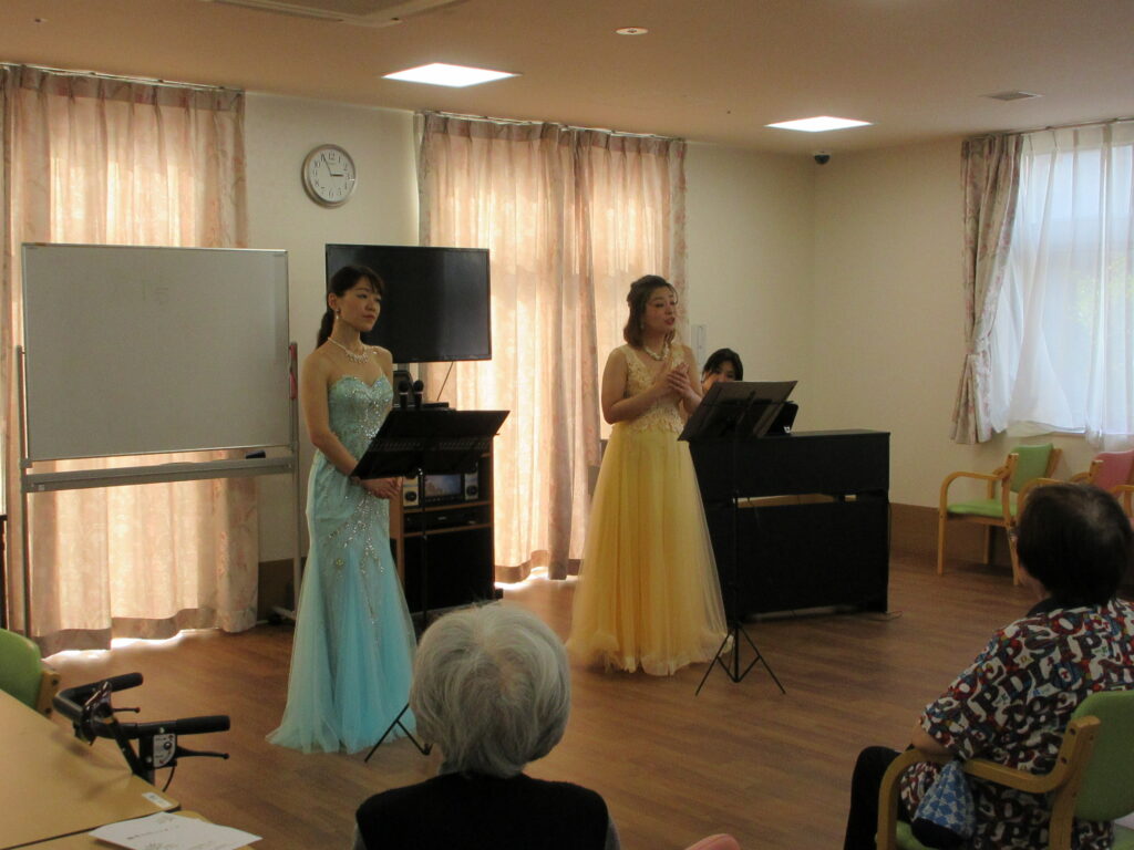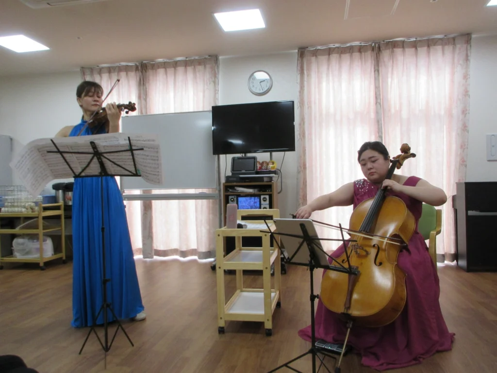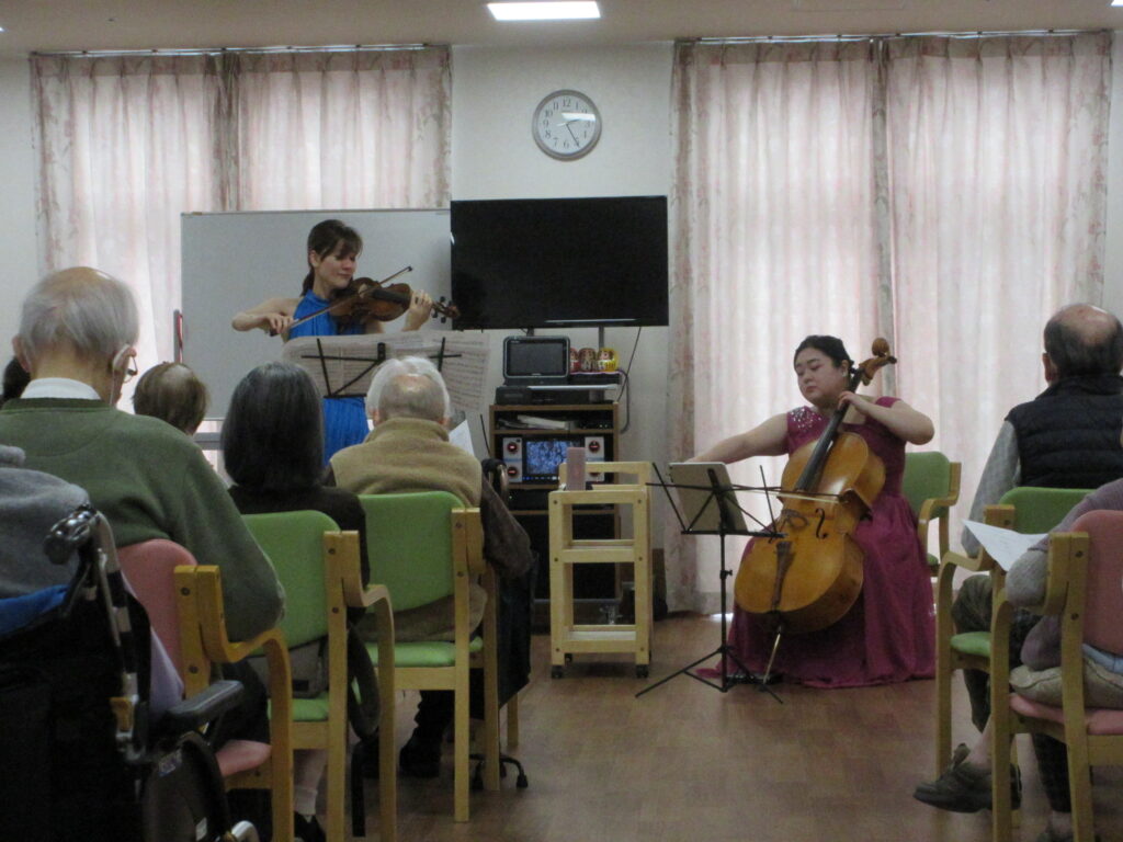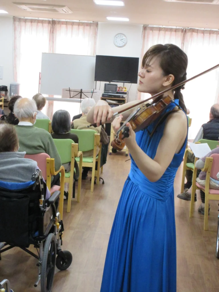 外出がなかなか難しいご入居者様のため、外部から音楽家を招き演奏会を開催しました。
