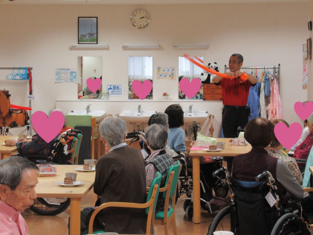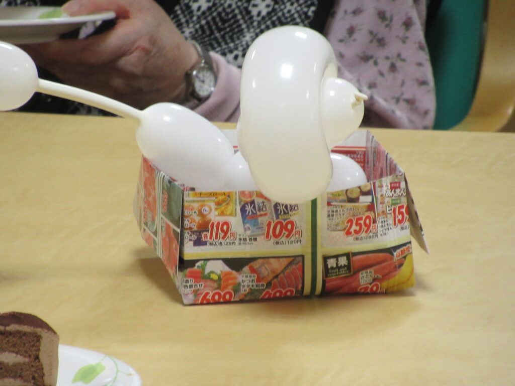 お誕生日をお迎えられたご入居者様に、バルーンアートで犬を作ってプレゼントしてくださいました!皆さまに楽しんでいただけたお誕生日会となりました。