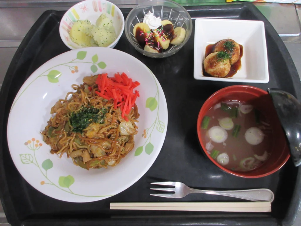 昼食には夏祭りの雰囲気を盛り上げるべく、『焼きそば』『たこ焼き』『チョコバナナ』を提供させていただきました。