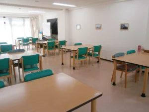 食堂、浴室(一般浴・機械浴)、ヘルパーステーション、健康管理室、機能訓練コーナー兼談話室、事務室、洗濯室、トイレ、エレベーター |