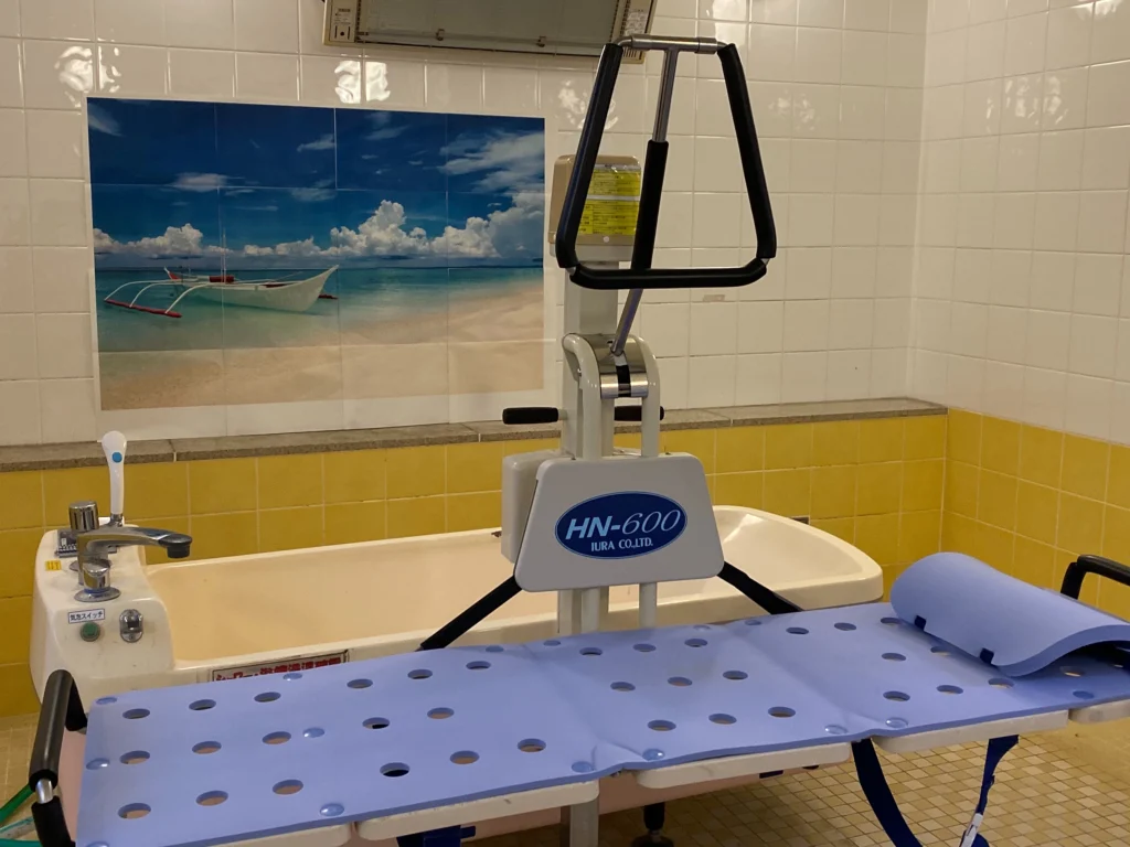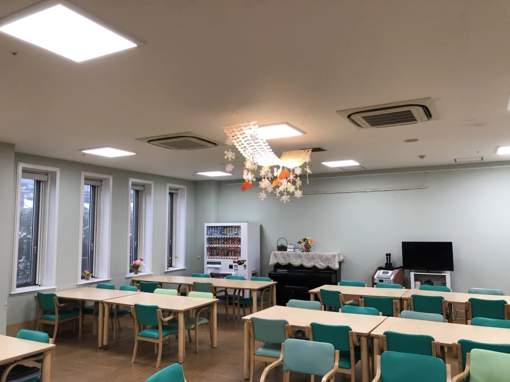 食堂、浴室(一般浴・機械浴・個浴)、ヘルパーステーション、健康管理室、機能訓練コーナー、談話コーナー、理美容室、事務室、洗濯室、トイレ、エレベーター |