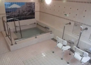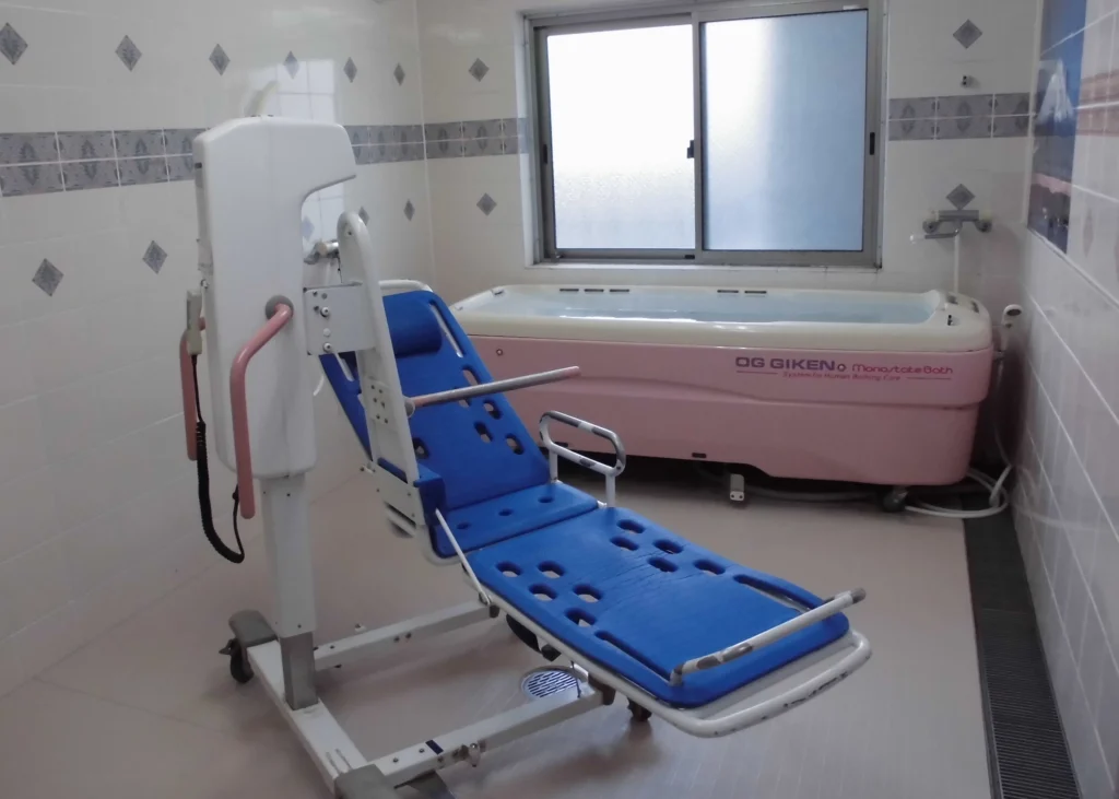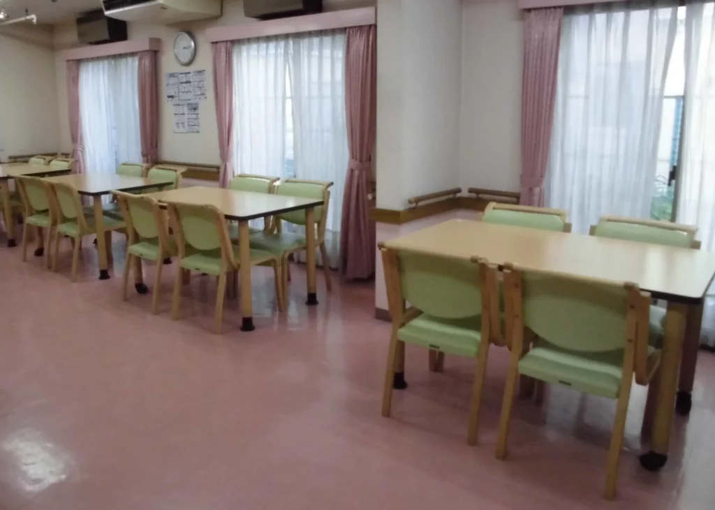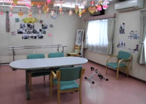 食堂、浴室(一般浴・機械浴)、ヘルパーステーション、健康管理室、機能訓練室兼談話室、事務室、洗濯室、トイレ、エレベーター |