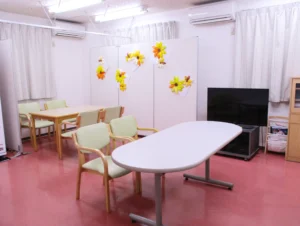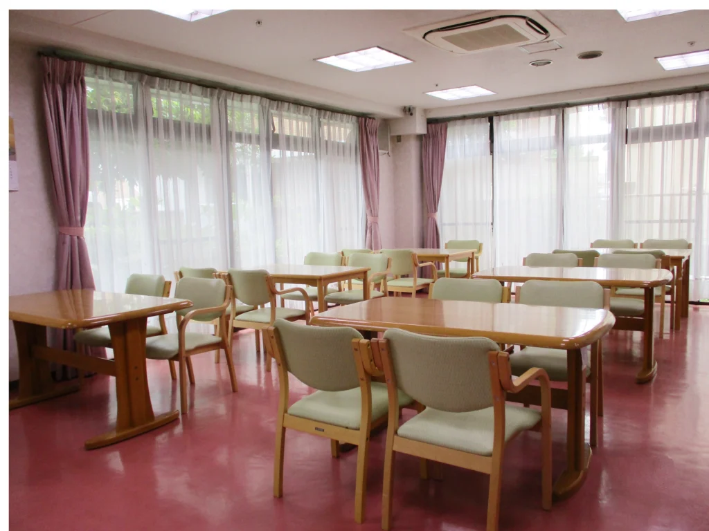 食堂、浴室(一般浴・機械浴)、ヘルパー室、健康管理室、談話スペース、事務室、洗濯室、トイレ、エレベーター |