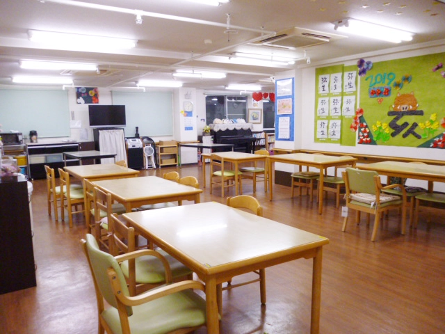 食堂、浴室(一般浴・機械浴)、ヘルパーステーション、健康管理室、多目的スペース、事務室、洗濯室、トイレ、エレベーター |