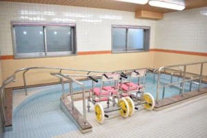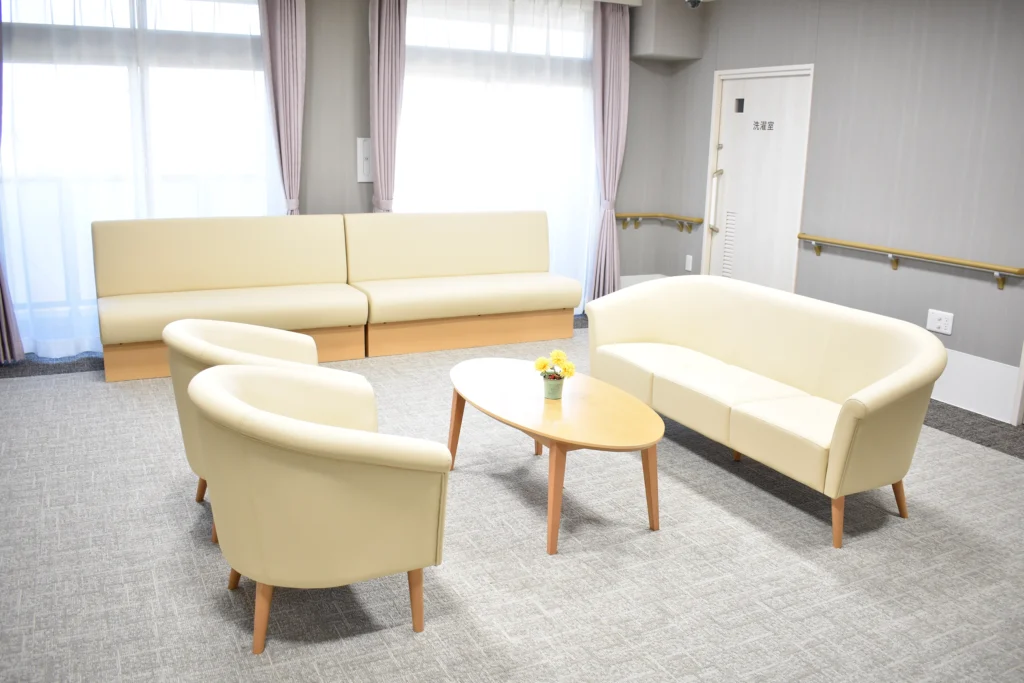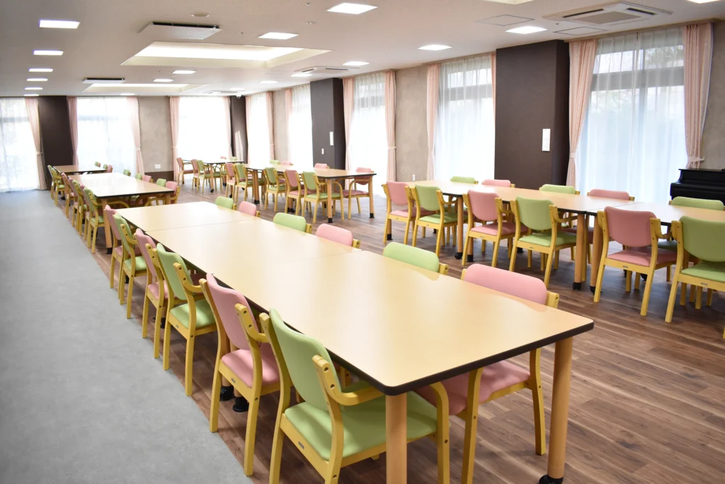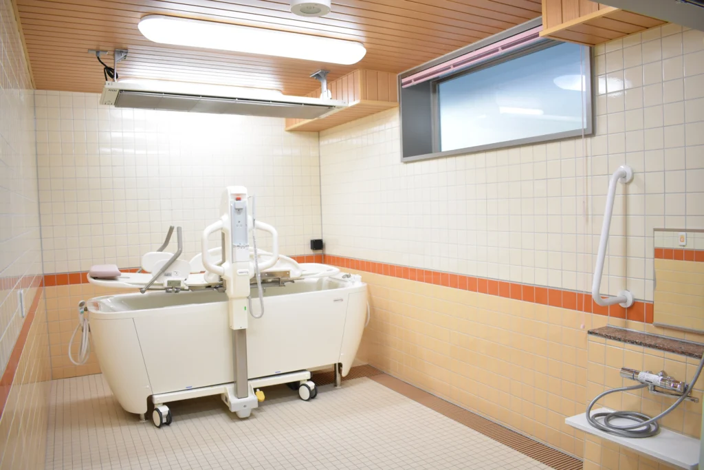 食堂、浴室(一般浴・機械浴・個浴)、ヘルパーステーション、健康管理室、談話コーナー、理美容室、相談室、ホール、事務室、洗濯室、トイレ、エレベーター |
