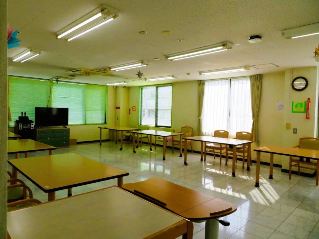 食堂兼談話室、浴室(一般浴・機械浴)、ヘルパー室、健康管理室、機能訓練室、談話コーナー、多目的室、生活相談室、洗面所、事務室、洗濯室、トイレ、エレベーター |